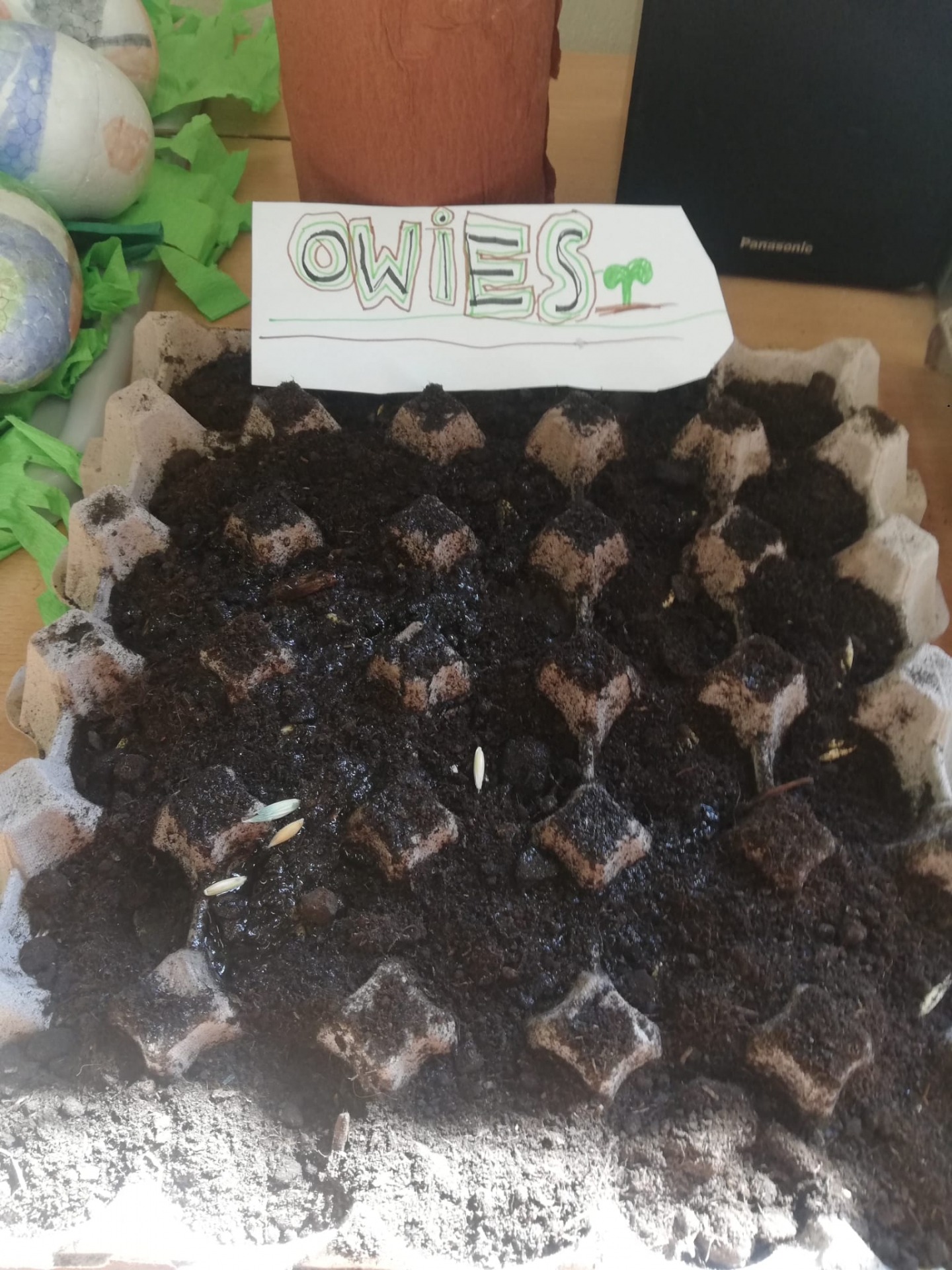 . Zamieniliśmy się także w ogrodników i posialiśmy rzeżuszkę i owies wielkanocny. Teraz obserwujemy efekty