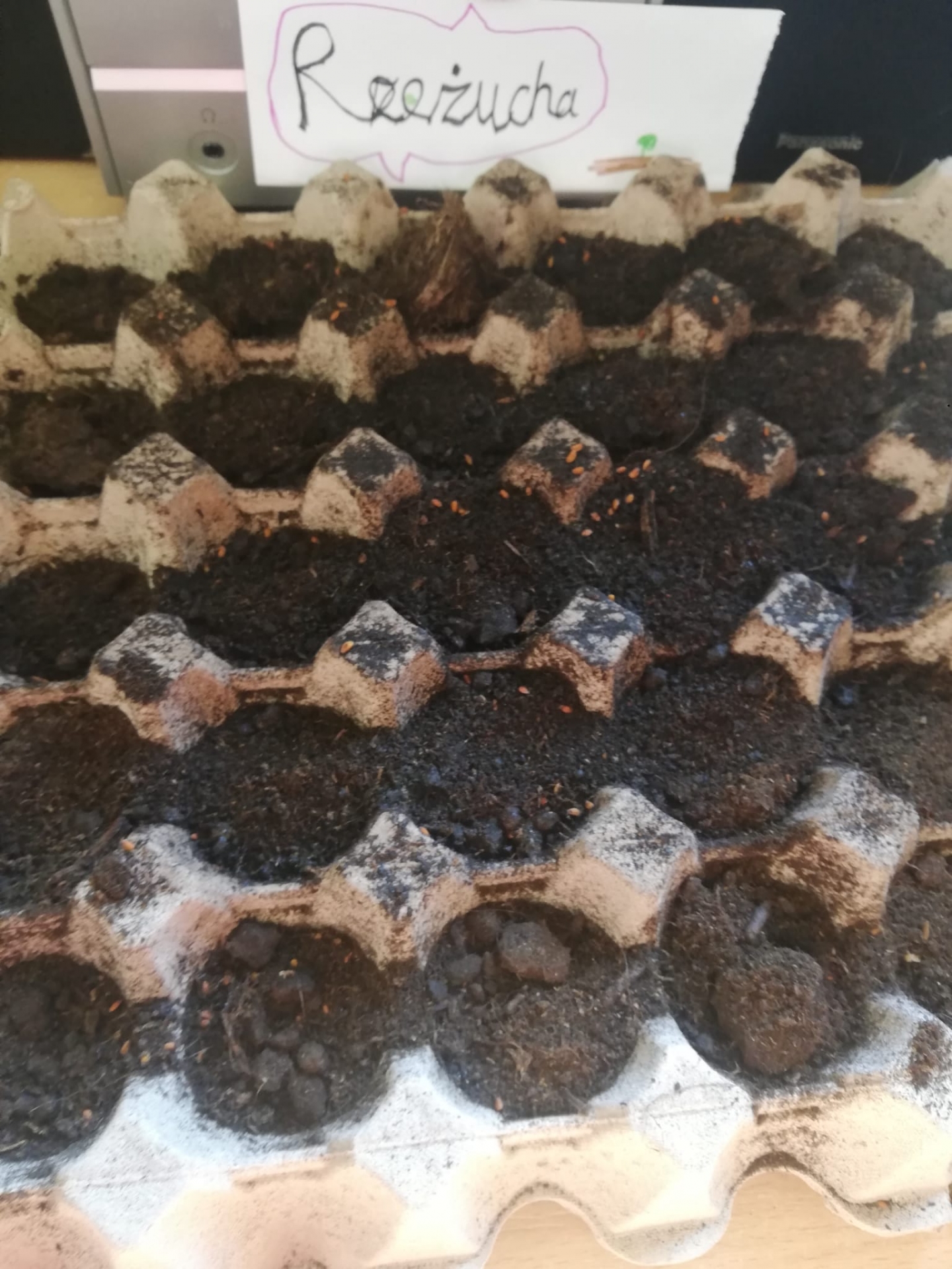 . Zamieniliśmy się także w ogrodników i posialiśmy rzeżuszkę i owies wielkanocny. Teraz obserwujemy efekty