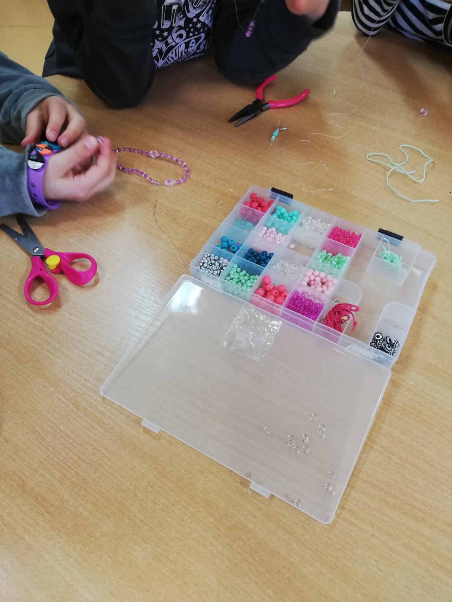 . Poza tym chłopcy bardzo chętnie spędzają czas na zabawie kolckami, a dziewczynki zajęły się tworzeniem własnej biżuterii![]()