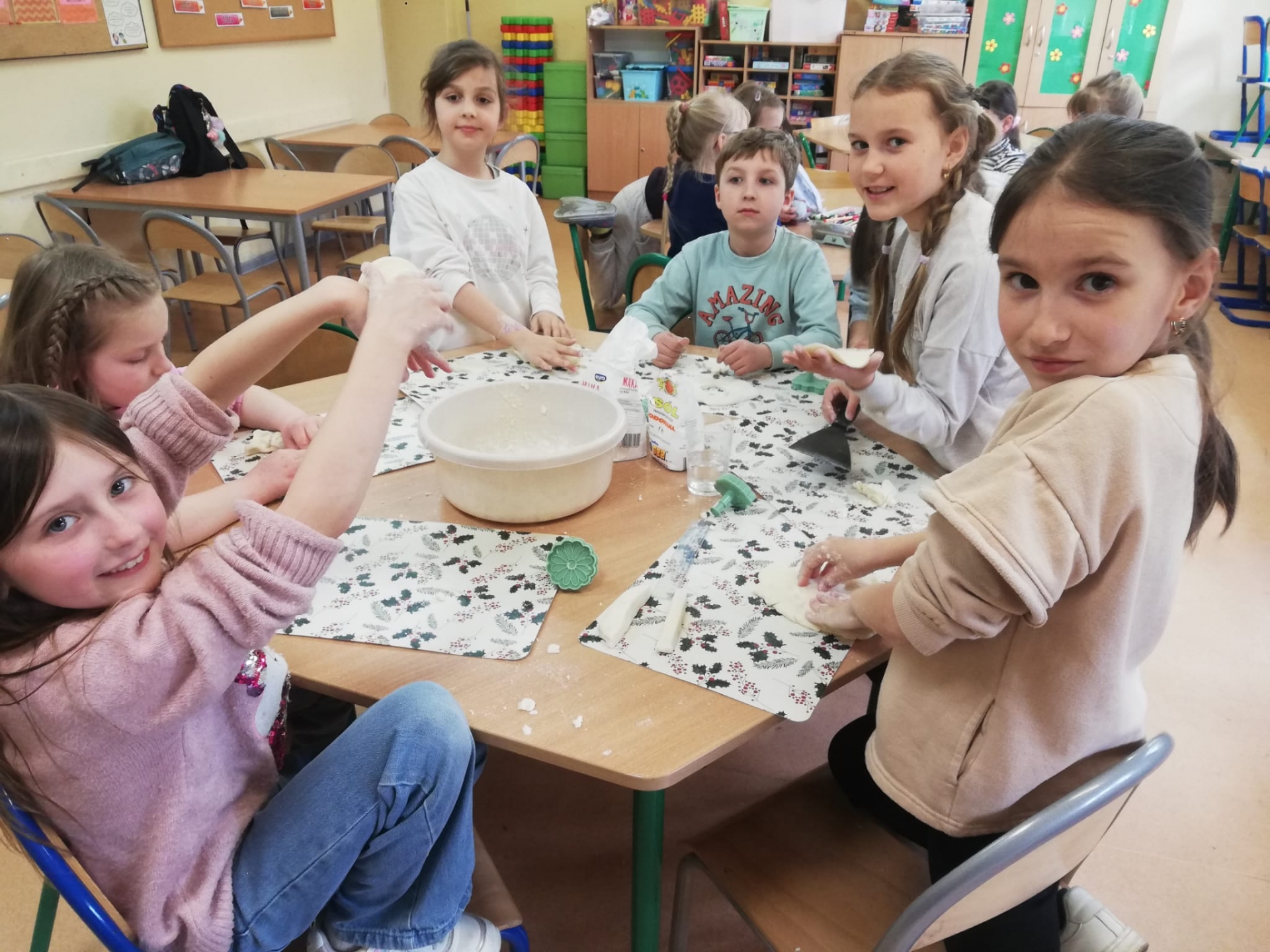 W marcu na świetlicy na ul. Góreckiej dużo sie działo. Malowaliśmy ogromne pisanki i mniejsze króliczki, lepiliśmy różne figurki z masy solnej. Już samo przygotowanie masy okazało się świetną zabawą