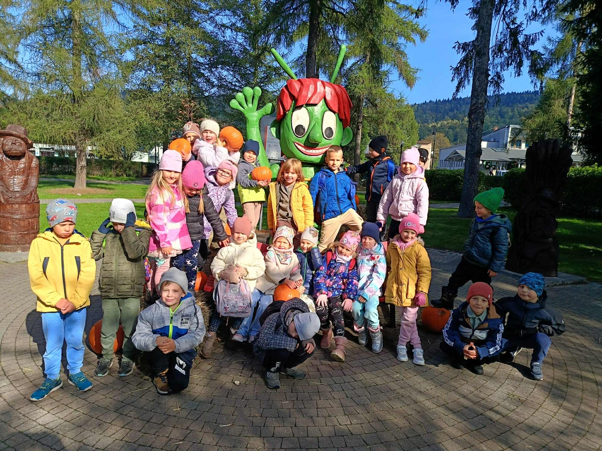 W miniony piątek ruszyliśmy na górskie szlaki. Piękna, słoneczna pogoda dopisała podczas wędrówki. Klasa 5b wyruszyła do Wisły. W zajeździe na Zieleńskiej Polanie na turystów czekały pyszne pączki. Zerówka wyruszyła na rajd z biegiem rzeki. Przy okazji dzieci odwiedziły wioskę dyniową przy hotelu Kotarz.